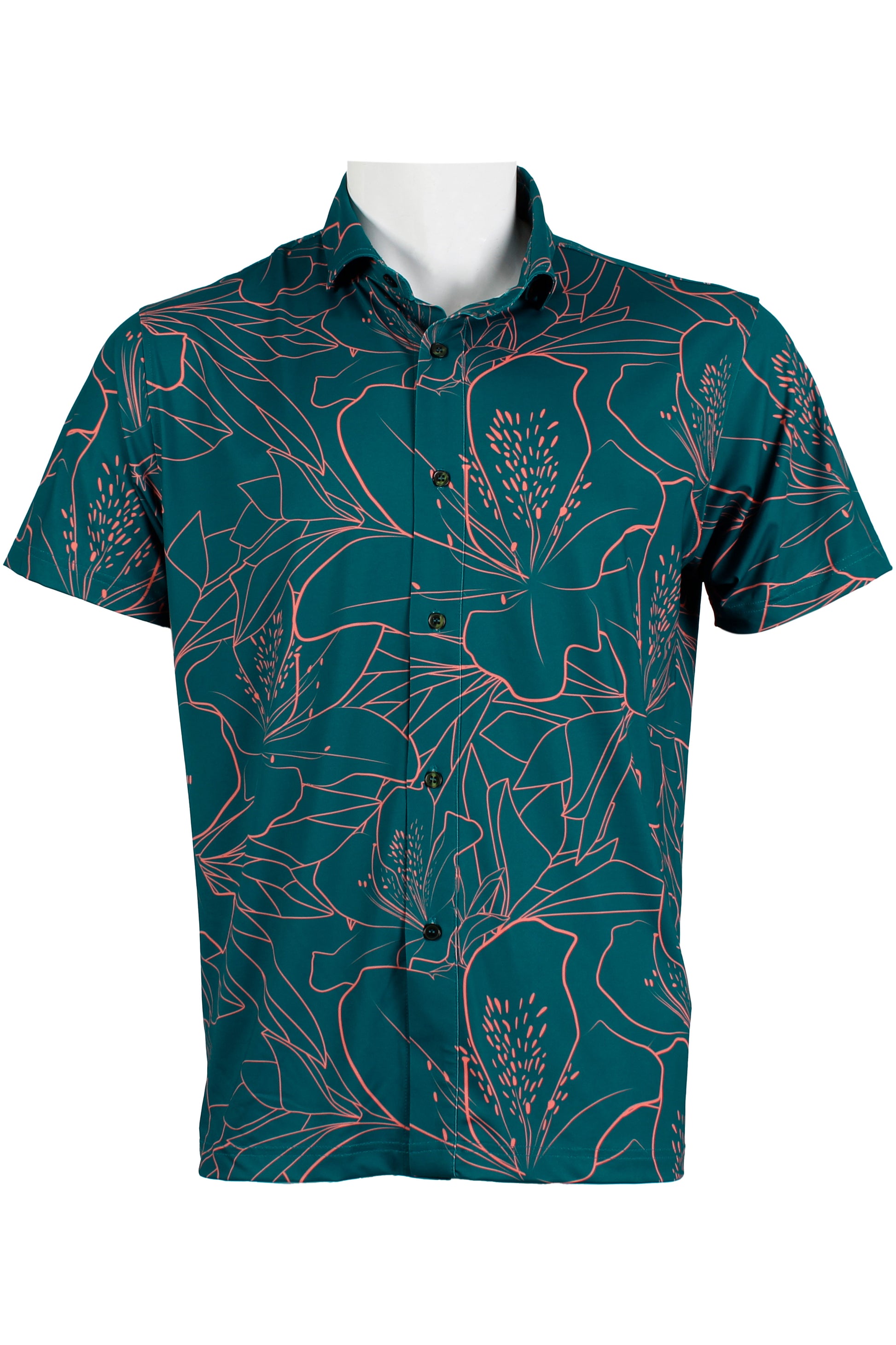 Our azalea button down shirt in teal and coral was designed for ultimate comfort and style, using the same comfy and innovative material as our classic polos.