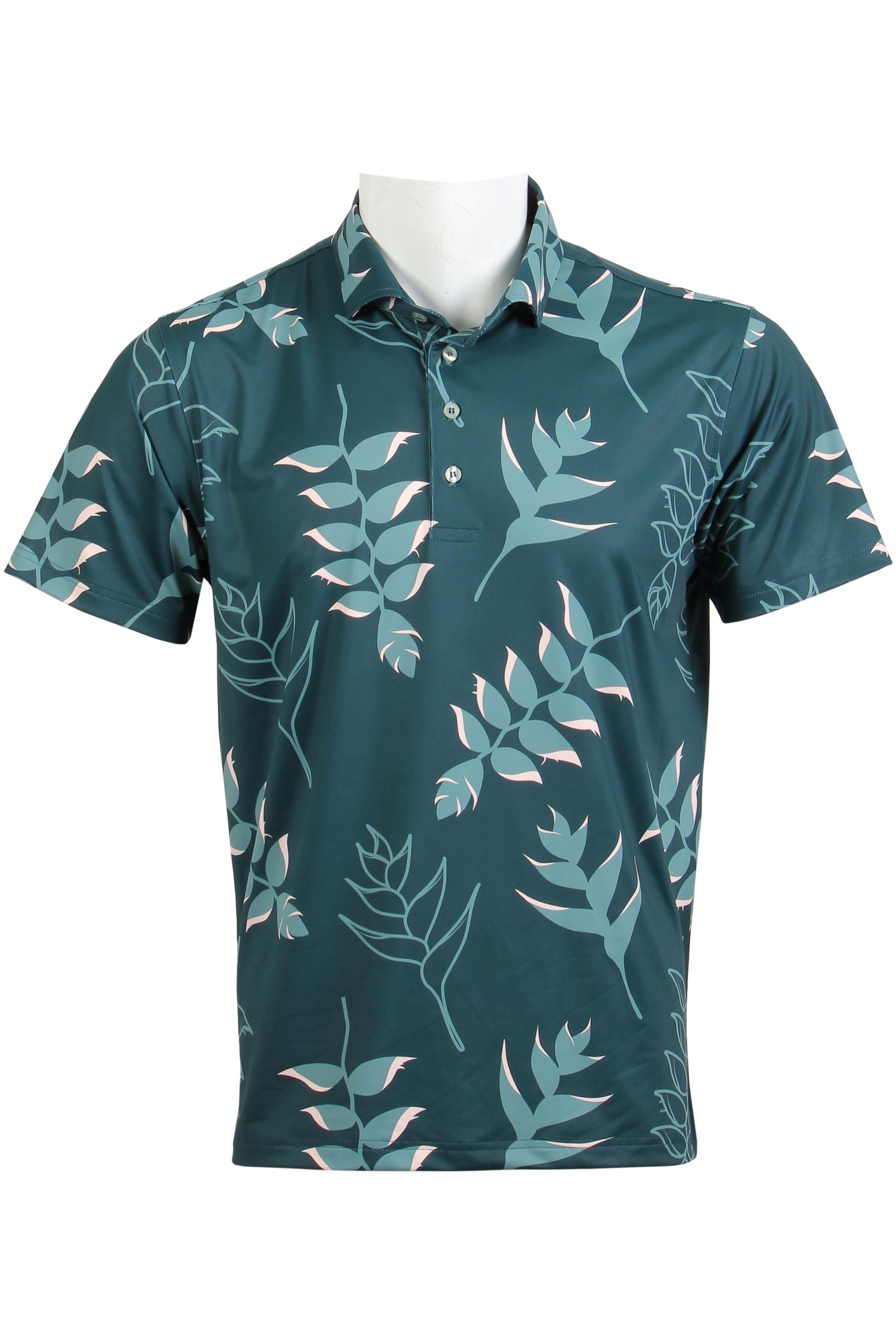 Our heliconia polo shirt in green and pink was designed for ultimate comfort and style.