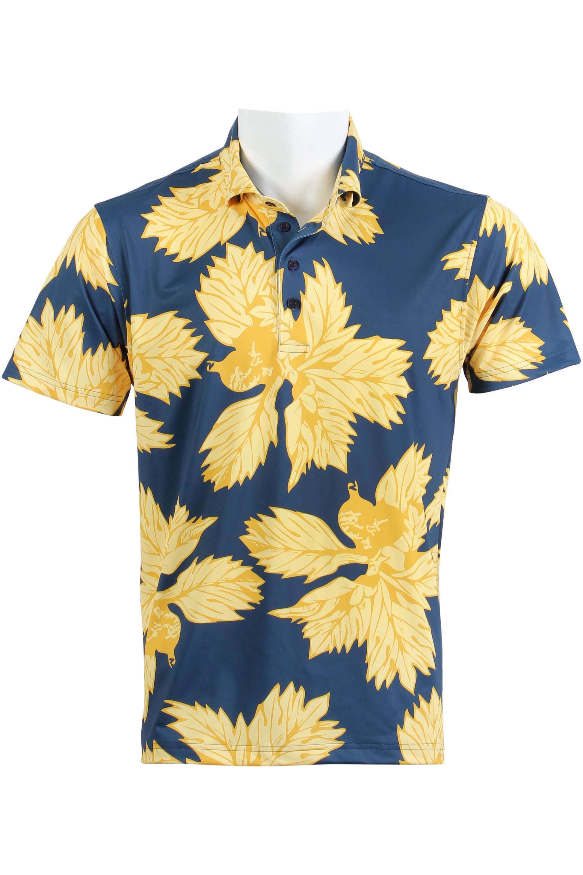 Our 'ulu polo shirt in navy and yellow was designed for ultimate comfort and style.