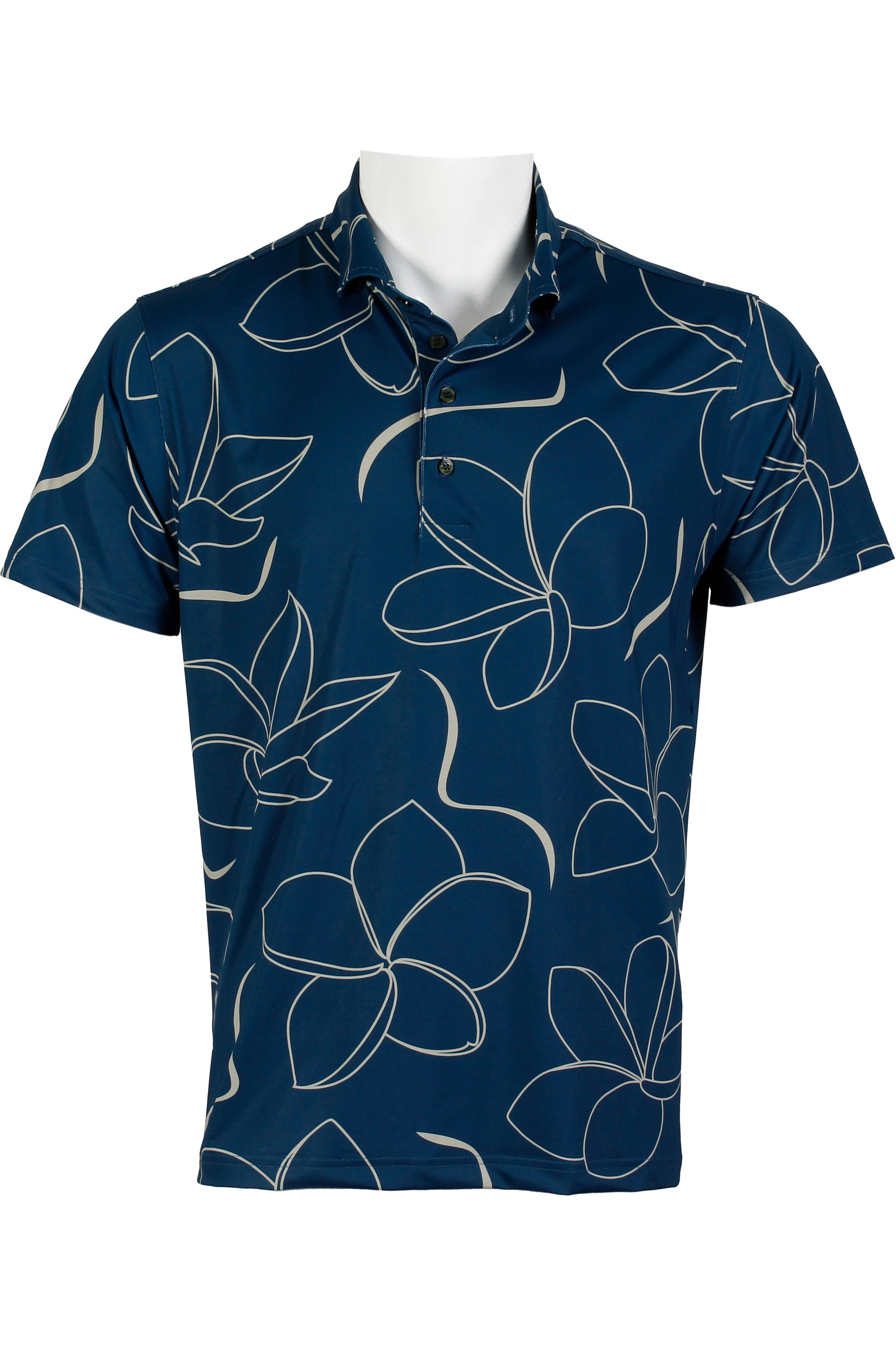 Our plumeria shirt in blue and tan was designed for ultimate comfort and style.