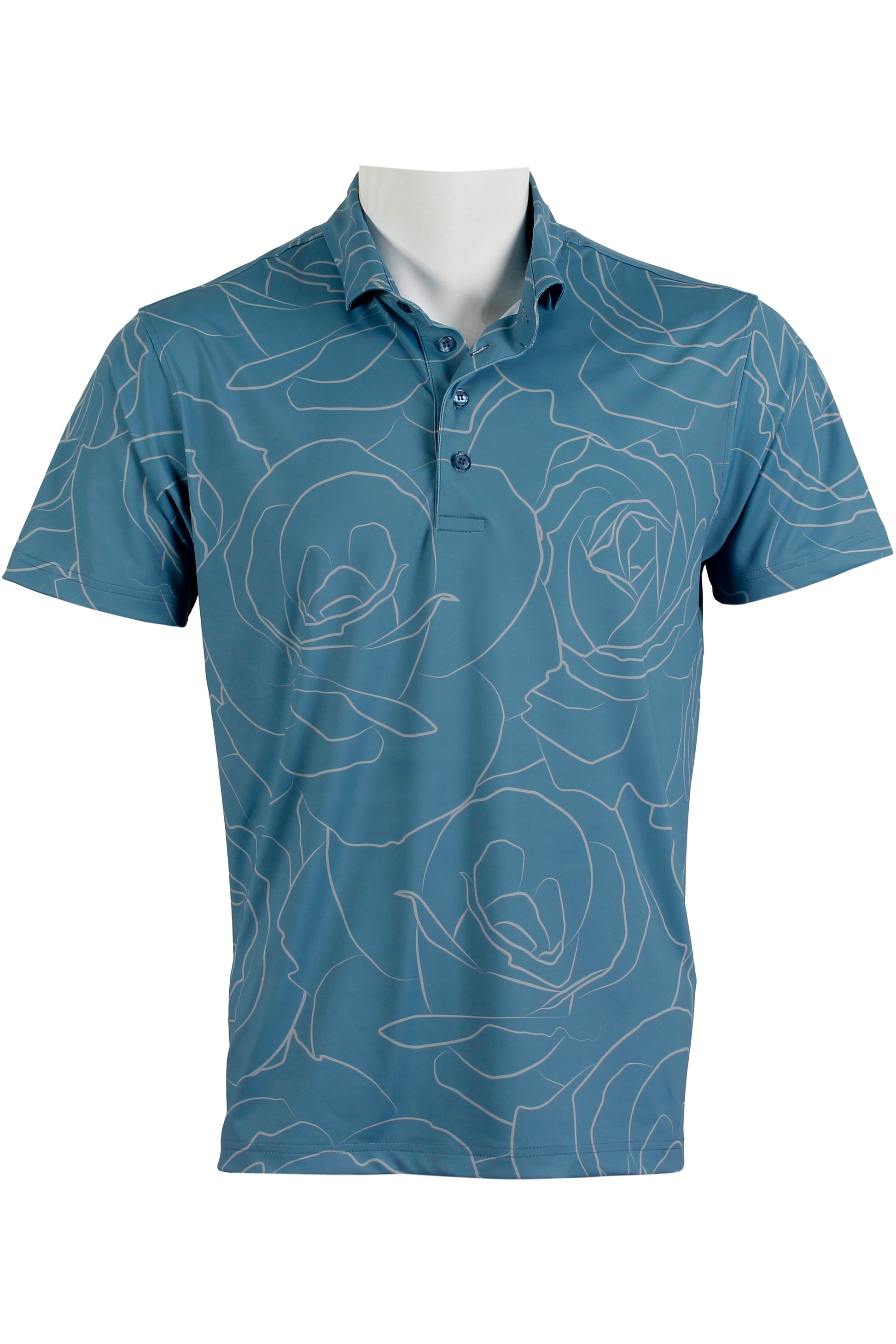 Our rose shirt in tan and blue and gray was designed for ultimate comfort and style.