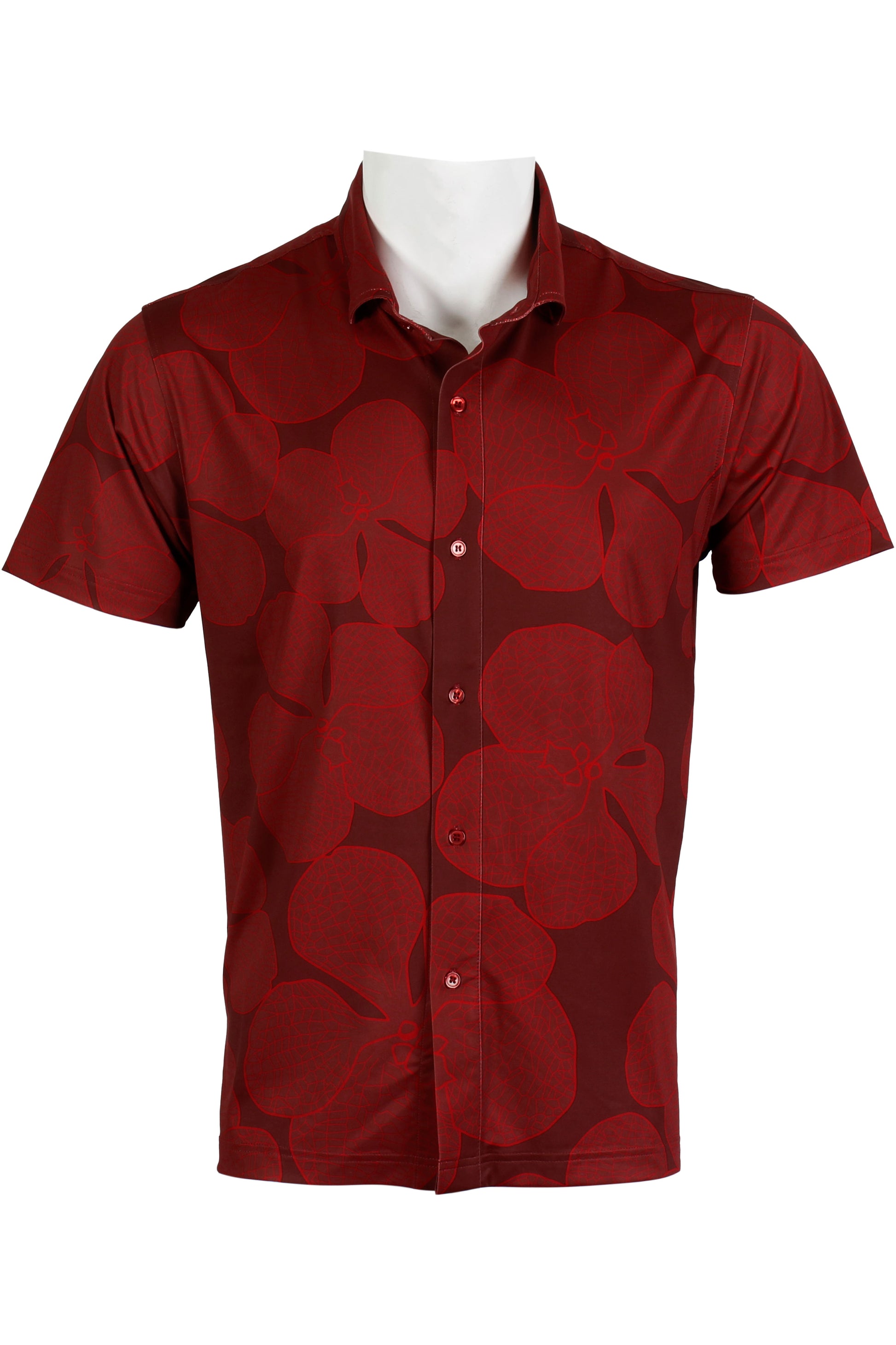 Our vanda orchid down shirt in red was designed for ultimate comfort and style, using the same comfy and innovative material as our classic polos.